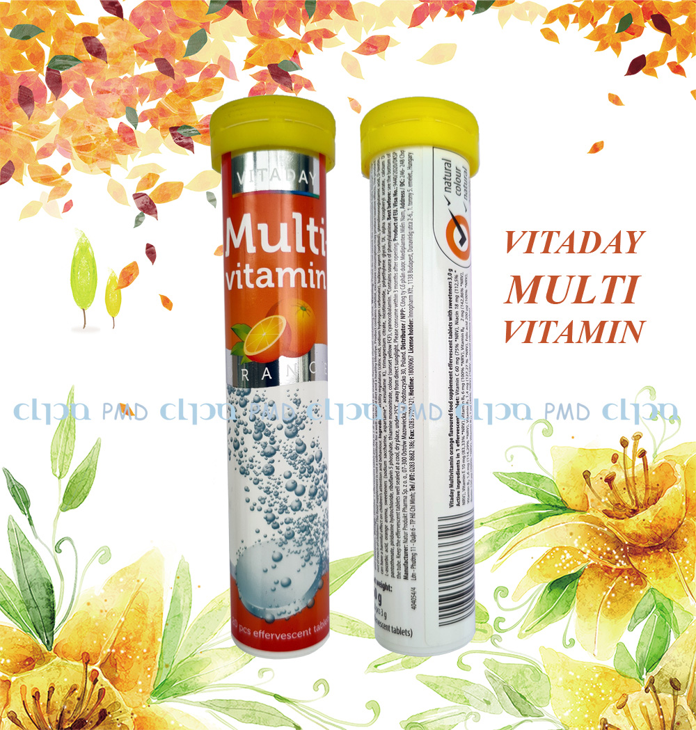 TÊN SẢN PHẨM: Thực phẩm bảo vệ sức khỏe: Viên sủi bọt Vitaday Multivitamin HƯƠNG CAM